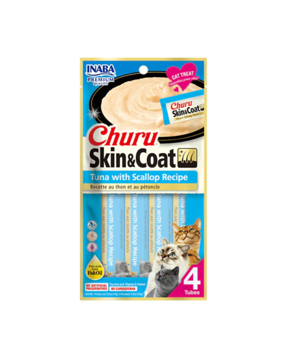 اينابا تشورو مكافأة للقطط للعناية بالجلد والفرو بالتونة والاسكالوب 4*14 جرام