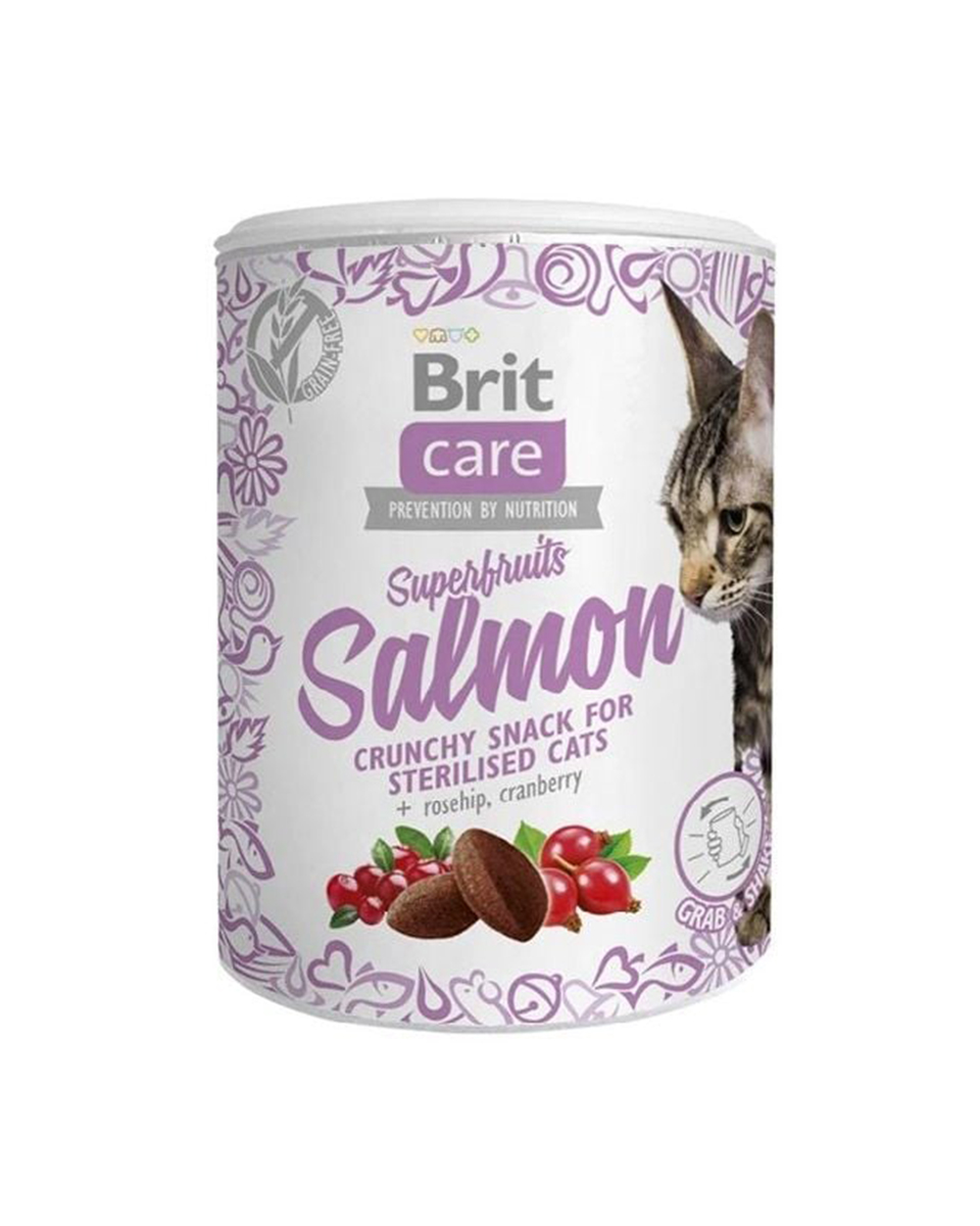 بريت كير سناك مقرمش للقطط المعقمة بسمك السلمون مع ثمر الورد والتوت البري 100 جرام