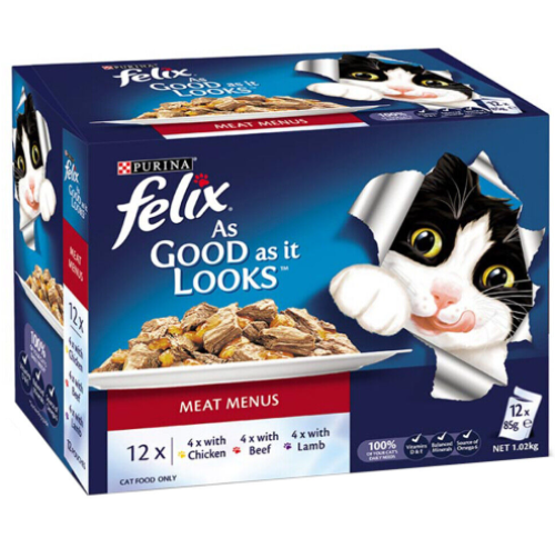 بورينا فليكس للقطط متعدد النكهات بالدجاج واللحم والامب 12 ظرف