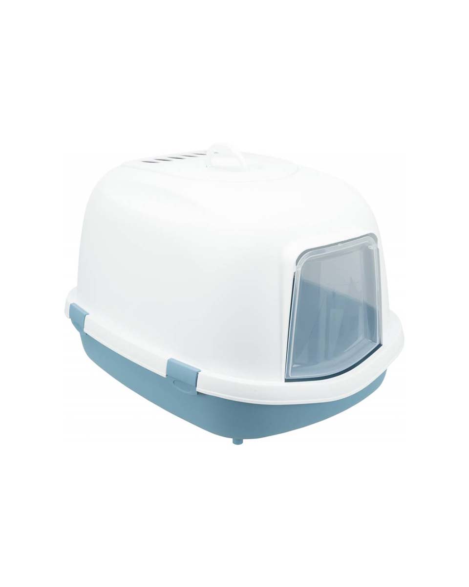 تريكسي حوض رمل واسع مع غطاء للقطط الكبيرة لون أزرق وأبيض 56 * 47 * 71 سم