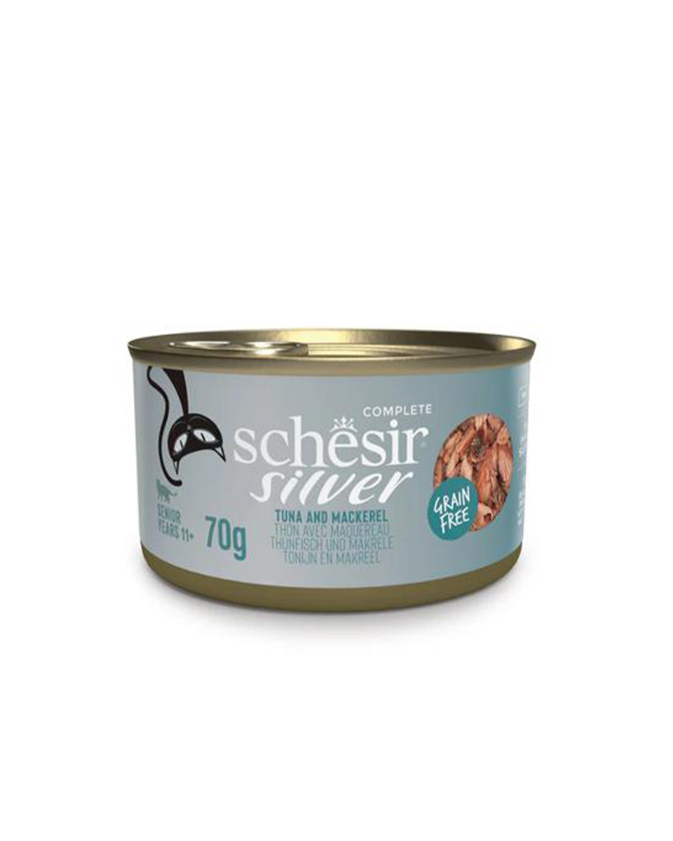 شيزر طعام رطب للقطط المسنة بعمر 11 سنة و اكثر بفيليه التونة والماكريل في المرق 12*70 جرام
